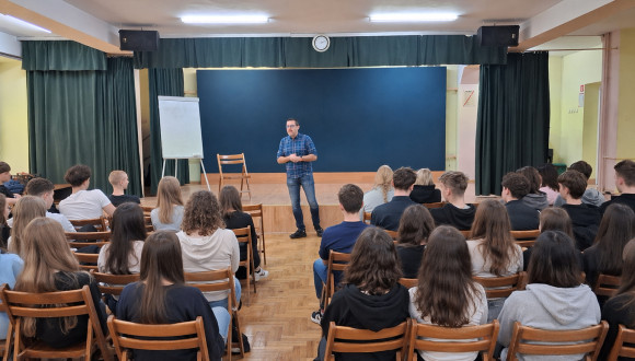 15 kwietnia 2026 r. w auli szkoły odbyło się spotkanie z dr. Tomaszem Drwięgą, Prodziekanem ds. Studenckich i Kształcenia na Wydziale Matema…