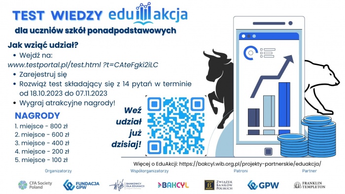 Warszawski Instytut Bankowości, CFA Society Poland, Fundacja GPW oraz Franklin Templeton zapraszają szkoły oraz uczniów szkół ponadpodstawowych do rozpoczęcia edukacyjnej przygody z rynkiem kapitałowym w ramach kolejnej edycji ogólnopolskiego projeku edukacyjnego EduAkcja.