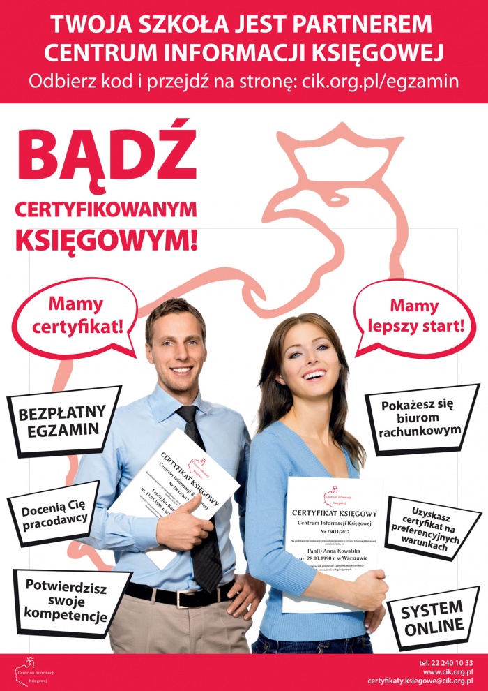 Ponadto uczestnik inicjatywy po zdanym egzaminie może uzyskać Certyfikat Księgowy C.I.K. na preferencyjnych warunkach.