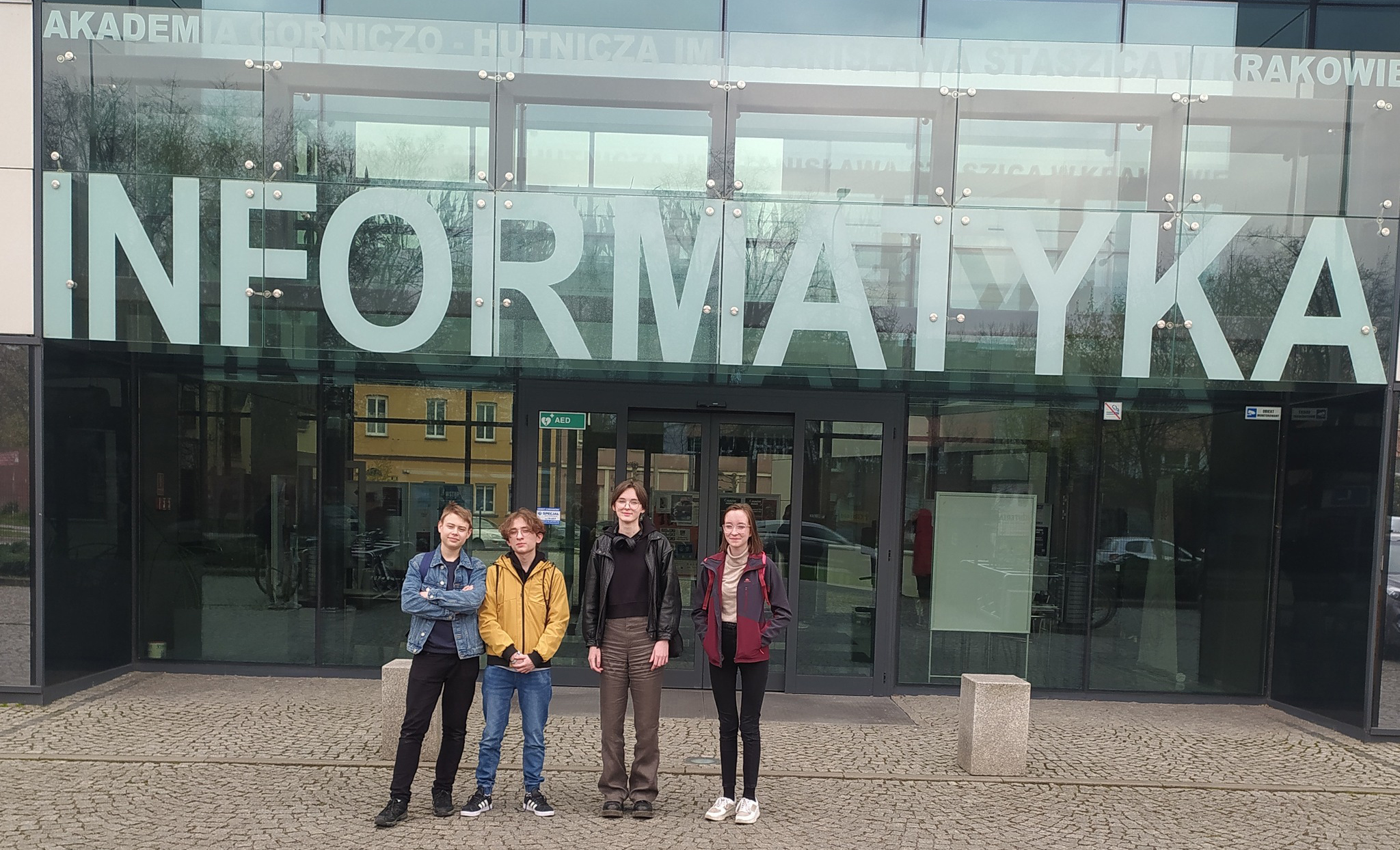 Fot 4. Podczas Regionalnego Etapu Zawodów Projektowych na AGH Kraków od lewej Witold Wojdyła, Igor Such, Anna Opałka, Krystyna Palacz.