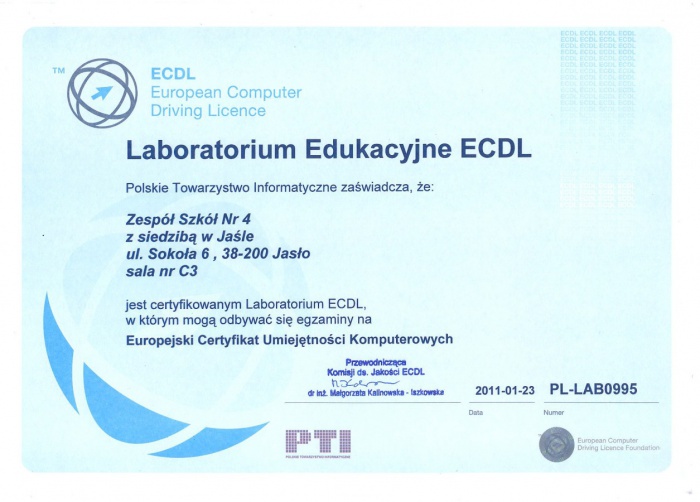 Nasi nauczyciele są pierwszymi egzaminatorami w Jaśle, którzy egzaminują uczniów i innych chętnych, biorących udział w zajęciach i egzaminach, umożliwiających uzyskanie Certyfikatu ECDL.